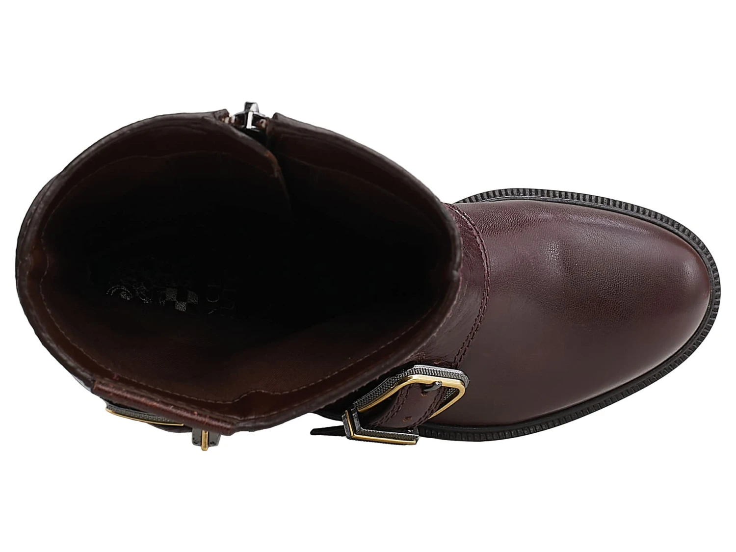- Leather upper with buckle details on the vamp, ankle, and shaft.