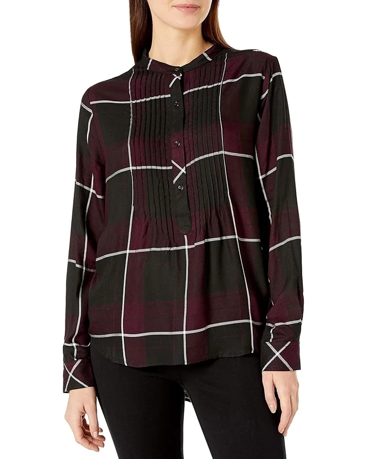 Vince Camuto Camuto Women’s Windowpane Roll Tab Pintuck Henley Top