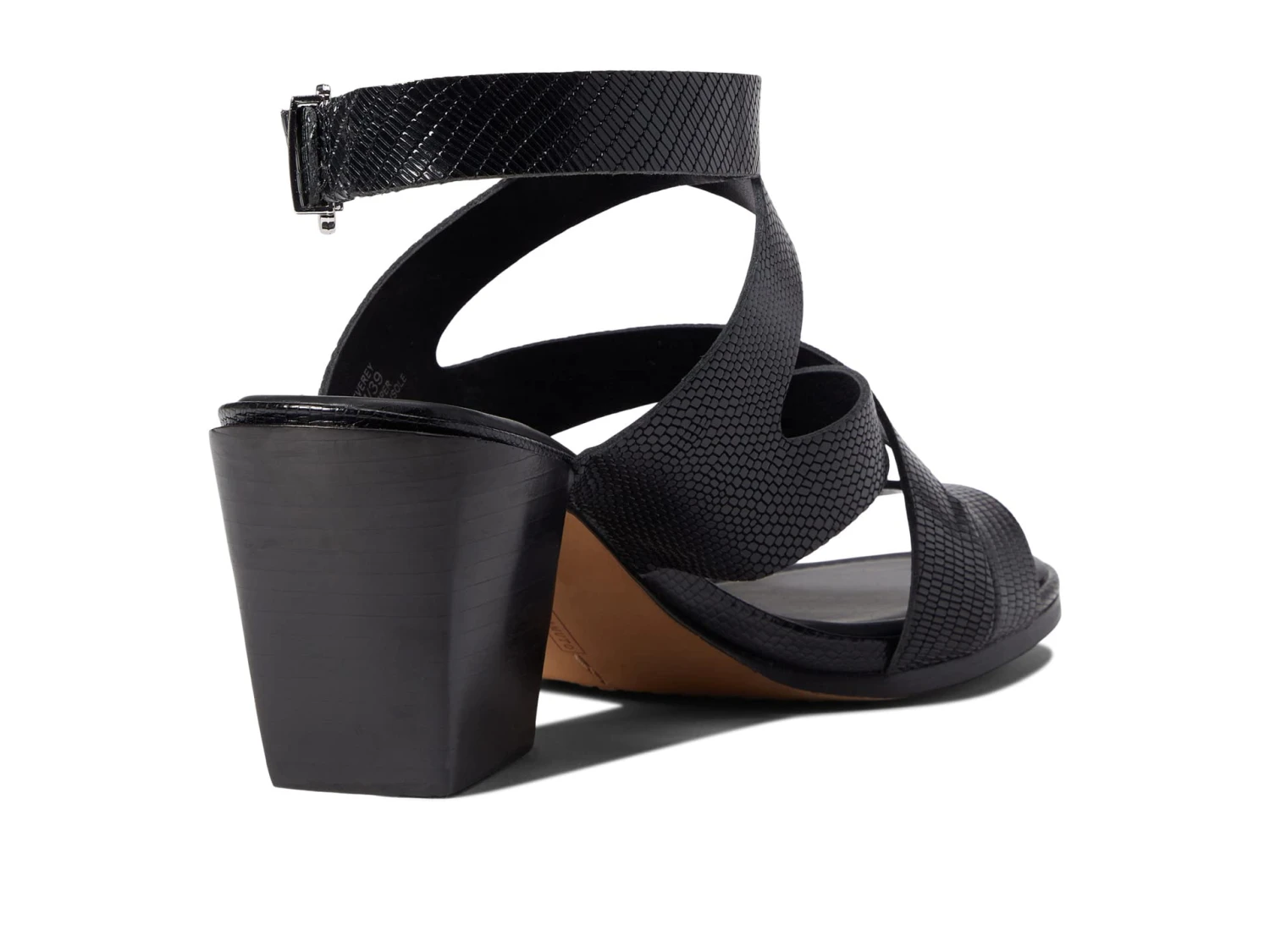 - Heeled sandals featuring leather upper with crisscross straps detailing.