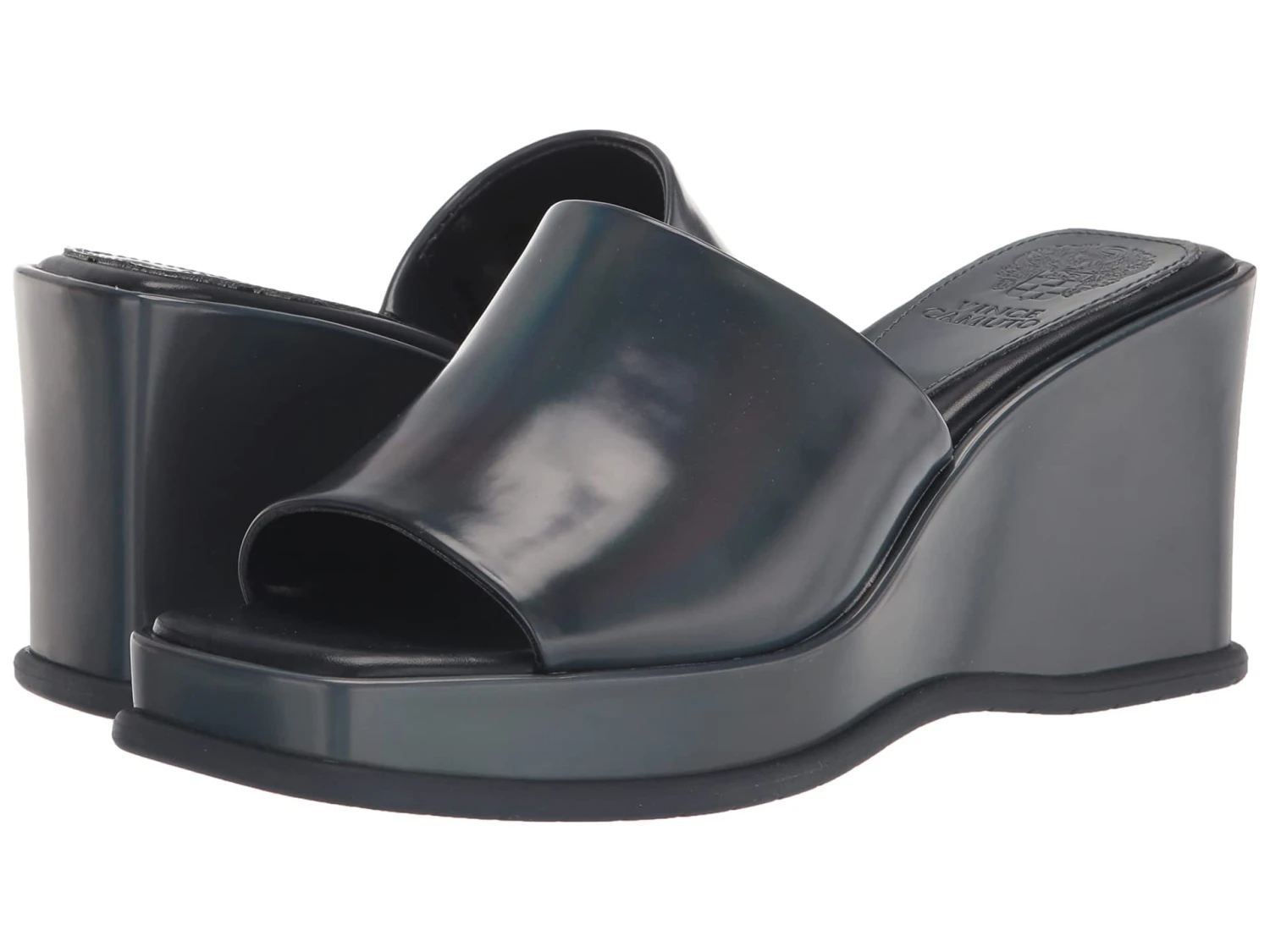 - Sleek wedge heel.