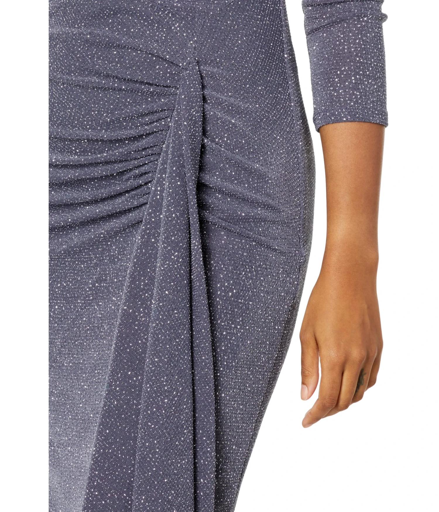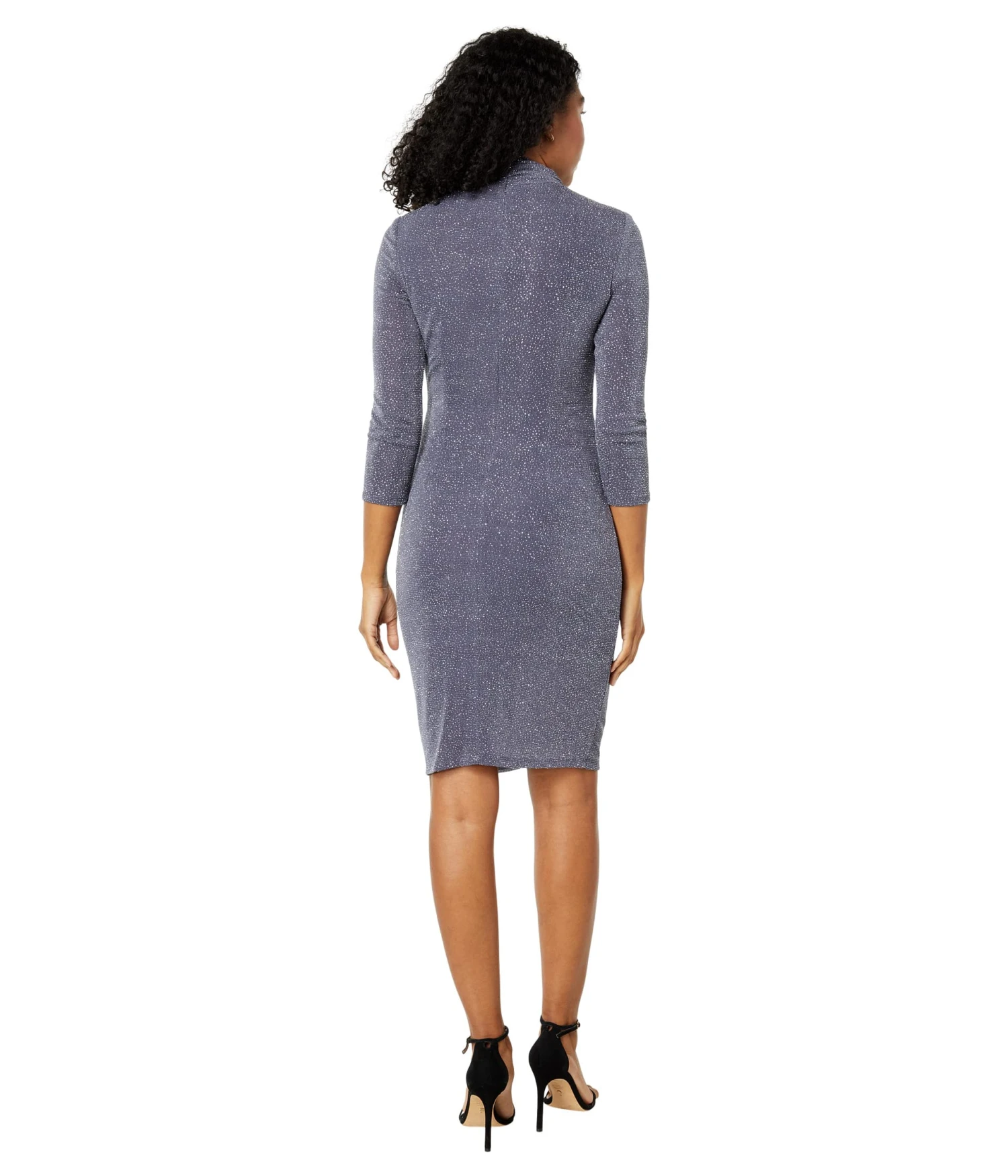 - The Vince Camuto® Glitter Knit Bodycon with Turtleneck and Front Drape Dress hugs her body right and accentuates her curves with its bodycon fit.