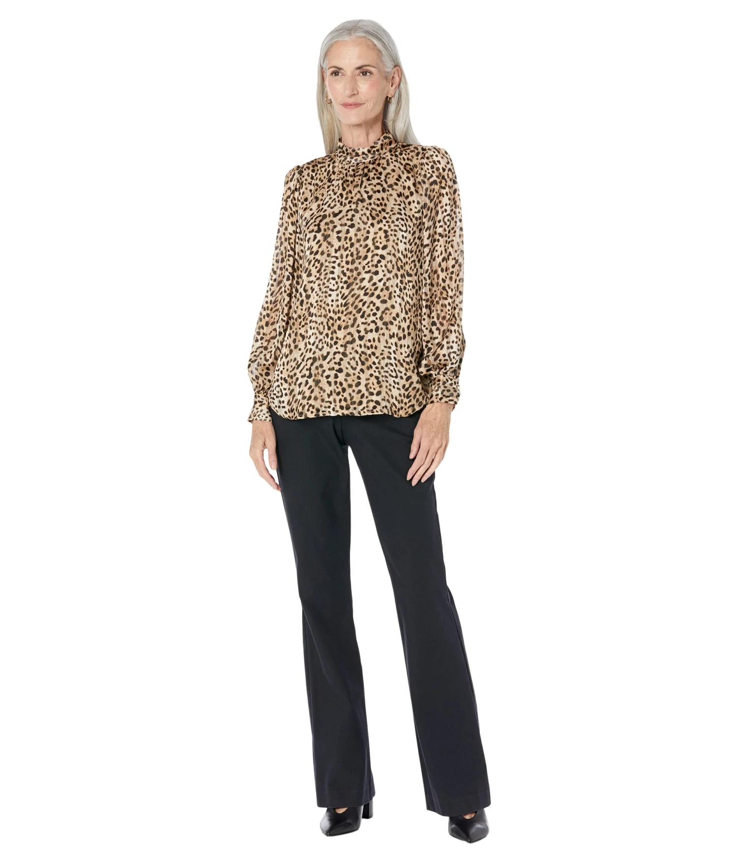 - Adorned with an on-trend animal print all over, the Vince Camuto® Puff Long Sleeve Blouse with Mock Neck Collar and Cuffs is sure to give you an elevated look.
