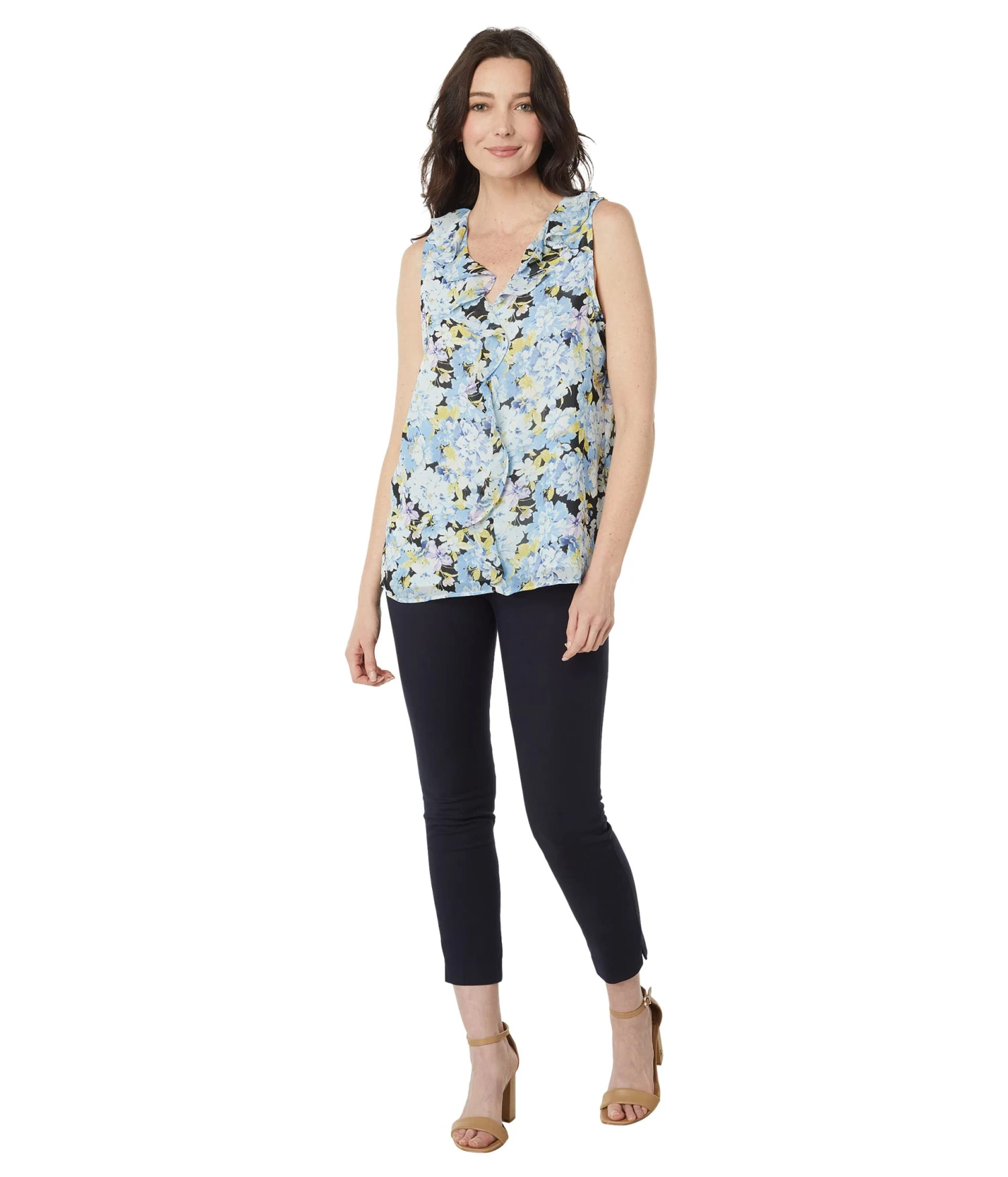 - The fluttering ruffle detail of Vince Camuto® Ruffle V-Neck Sleeveless Blouse adds a touch of charm to your look.