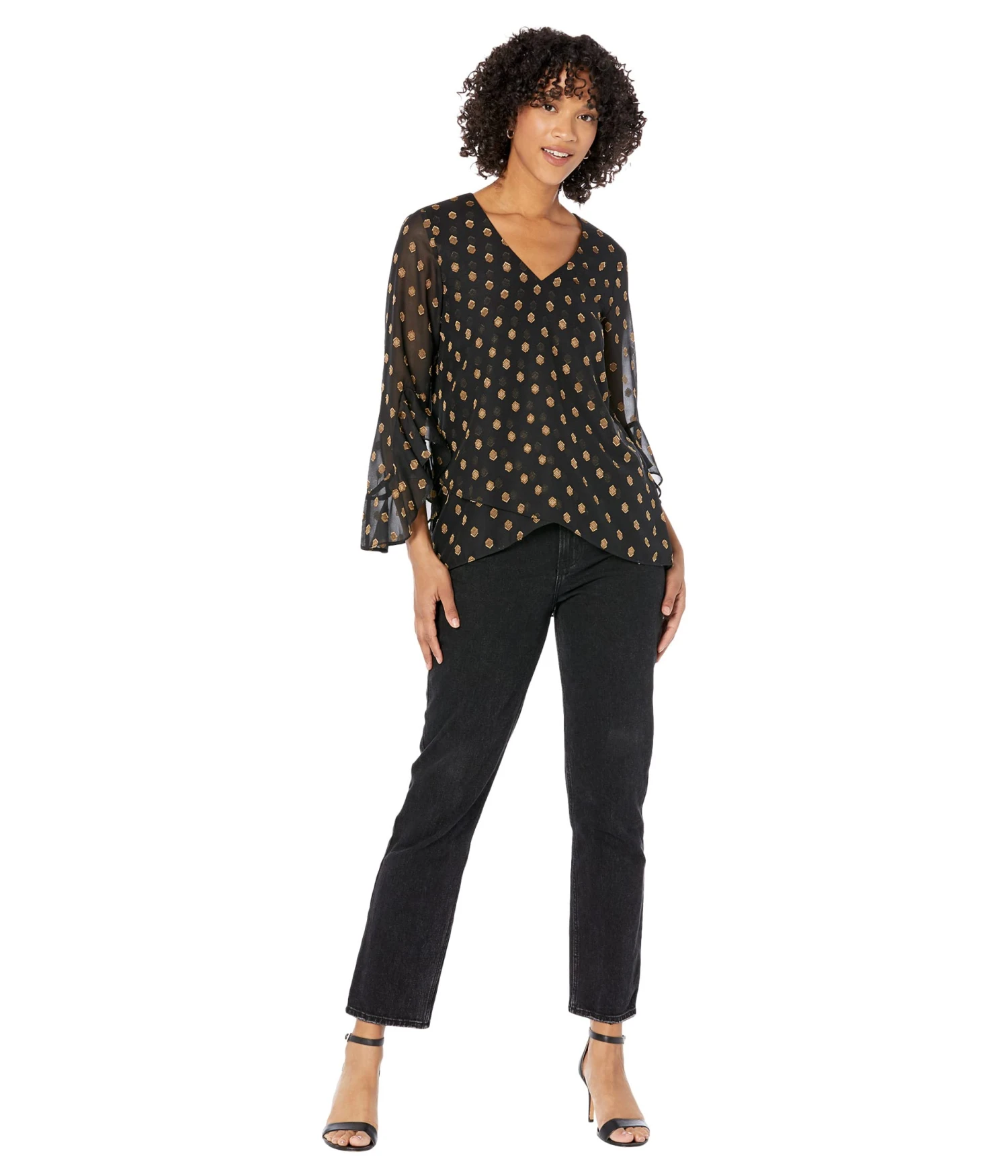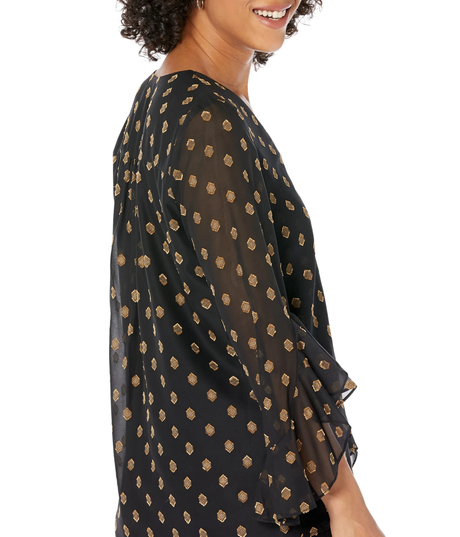 - Flaunt your style wearing the chic Vince Camuto® V-Neck Flutter Sleeve Blouse wherever you go and gather admiring compliments.